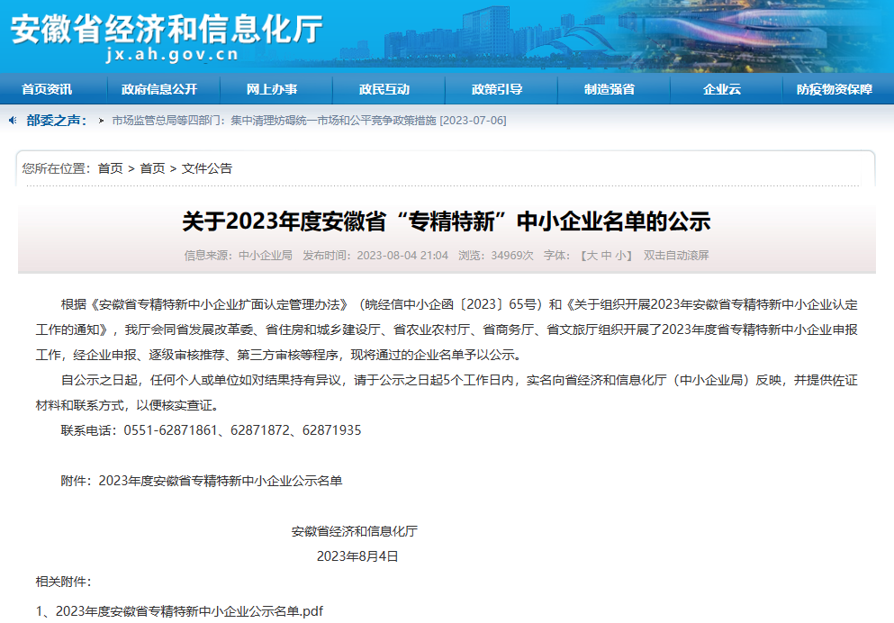 安徽省經(jīng)濟(jì)和信息化廳公示了